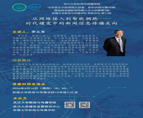 我院与武汉大学新闻与传播学院联合开展马新观大讲堂“从网络接入到智能拥抱——时代嬗变中的新闻信息传播走向”