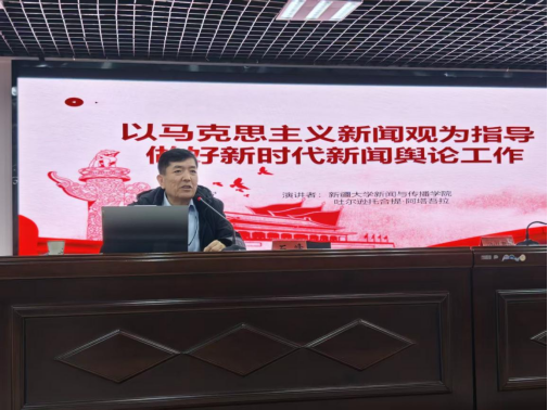 培训中,吐尔逊托合提书记以《以马克思主义新闻观为指导做好新时代新闻舆论工作》为题,围绕马克思主义新闻观的核心要义、新时代新闻舆论工作的使命任务、基层媒体如何坚守正确导向等关键问题,结合典型案例进行深度解读,引导基层新闻工作者坚定政治立场、强化责任担当,不断提升新闻舆论传播力、引导力、影响力、公信力。
